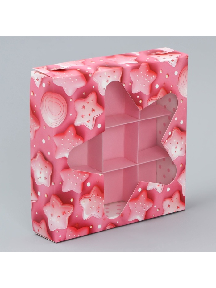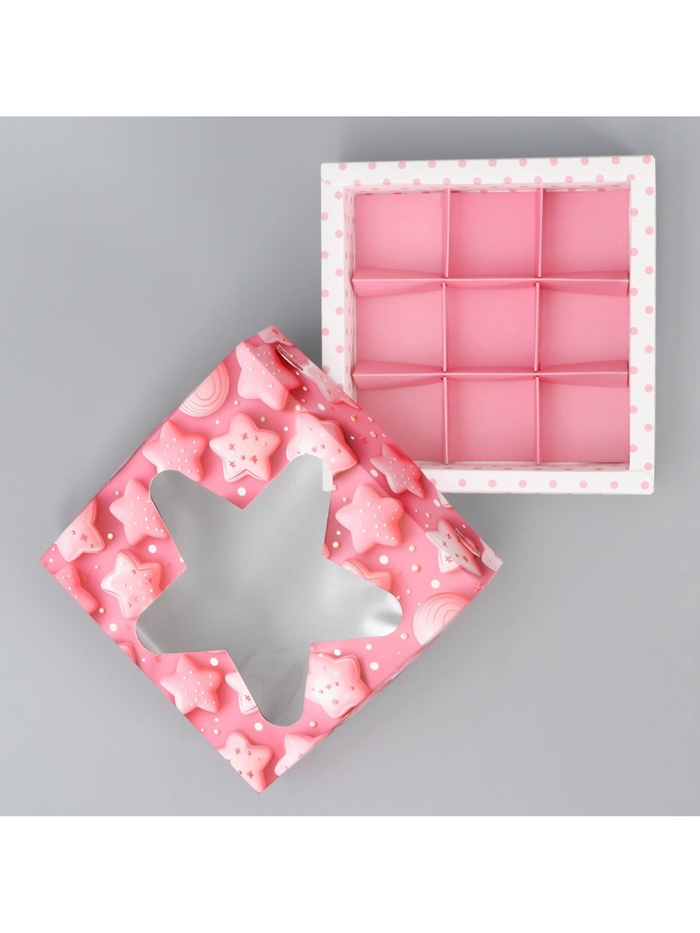 Коробка для конфет, кондитерская упаковка, 9 ячеек, «Сладости», 14.7×14.7×3.5 см