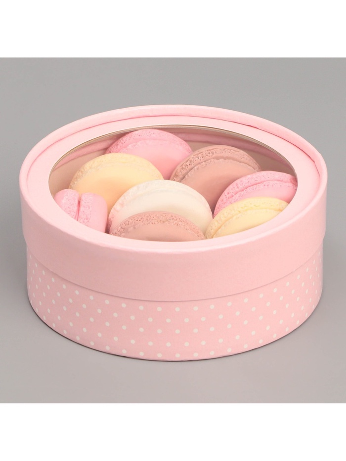 Коробка для макарун, кондитерская упаковка тубус с окном «Розовый» 16×16×5 см
