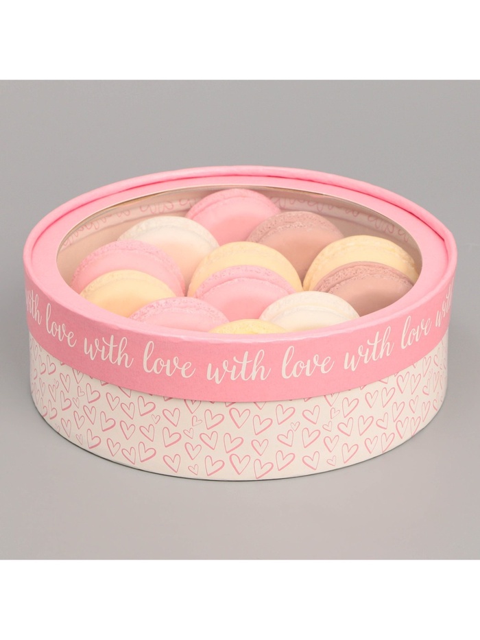 Коробка для макарун, кондитерская упаковка тубус с окном With love 20×20×5 см