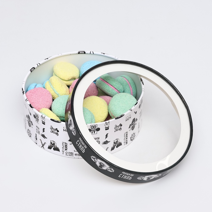 Коробка для макарун тубус с окном «Мужской стиль», 21×21×7 см
