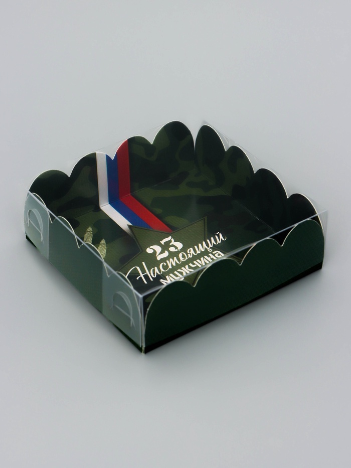 Прочный картон обеспечивает надежную защиту содержимого, а прозрачная крышка позволяет сразу оценить внешний вид угощений без необходимости открывать коробку.