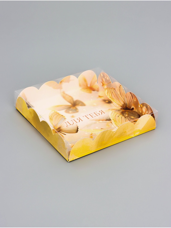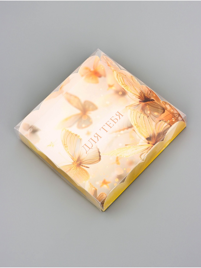 Прочный картон обеспечивает надежную защиту содержимого, а прозрачная крышка позволяет сразу оценить внешний вид угощений без необходимости открывать коробку.