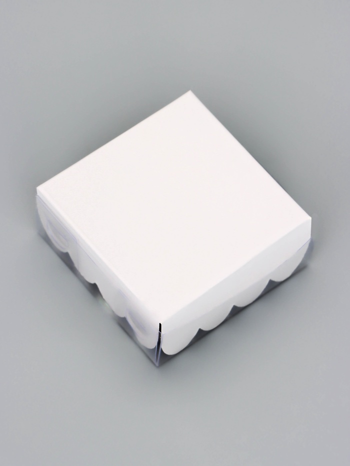 Прочный картон обеспечивает надежную защиту содержимого, а прозрачная крышка позволяет сразу оценить внешний вид угощений без необходимости открывать коробку.