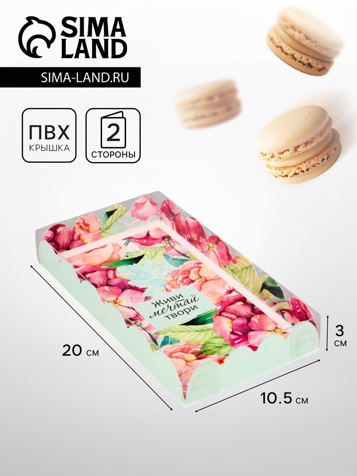 Прочный картон обеспечивает надежную защиту содержимого, а прозрачная крышка позволяет сразу оценить внешний вид угощений без необходимости открывать коробку.