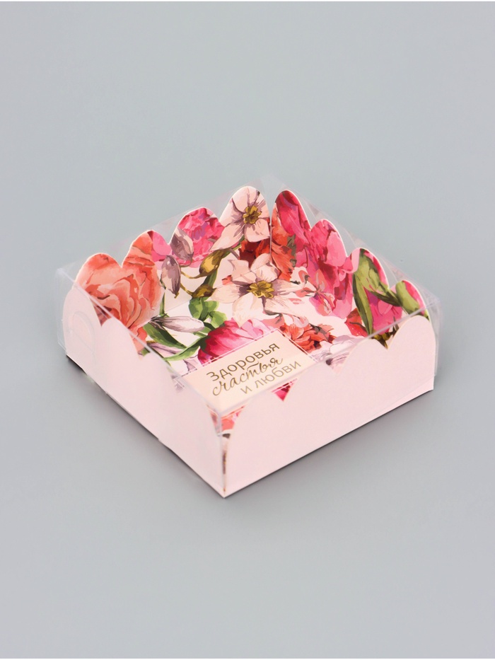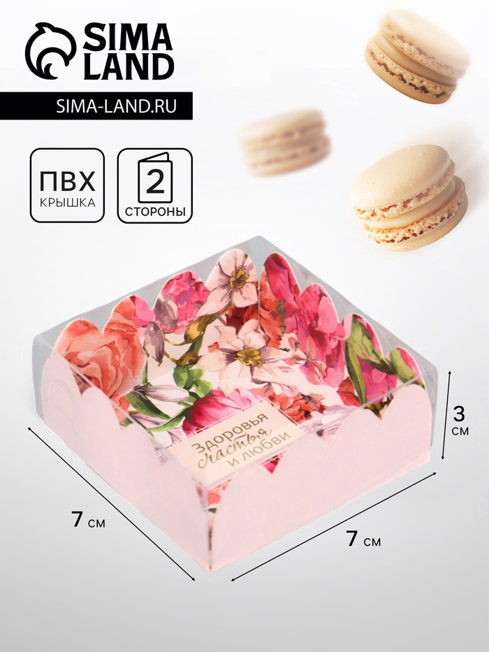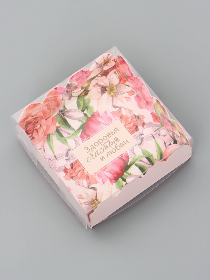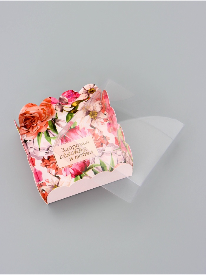 Прочный картон обеспечивает надежную защиту содержимого, а прозрачная крышка позволяет сразу оценить внешний вид угощений без необходимости открывать коробку.