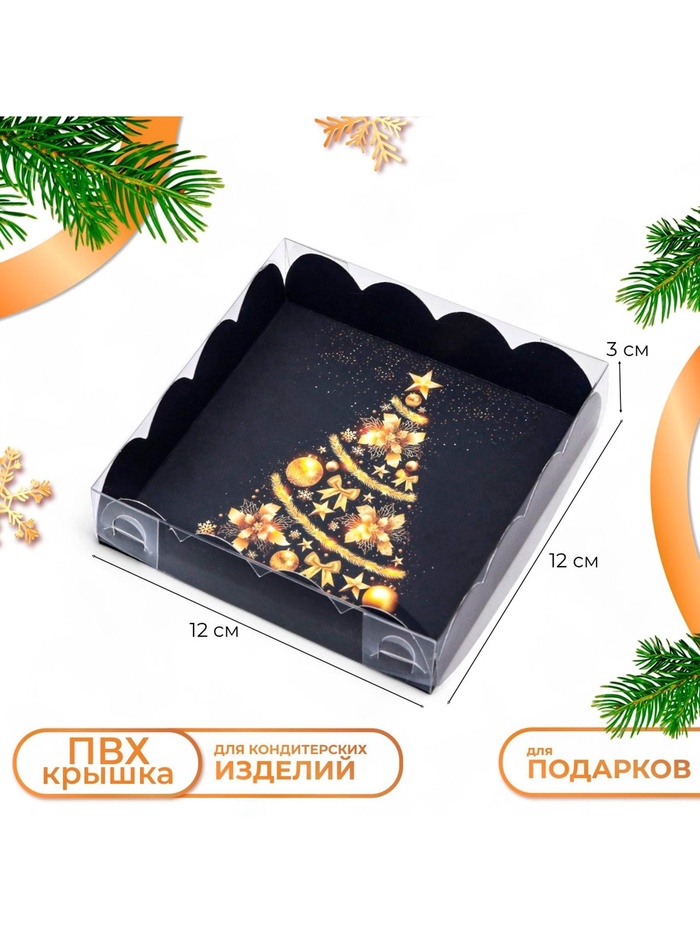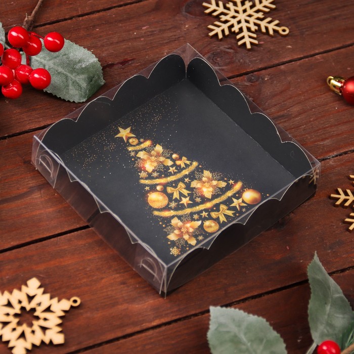 Коробка для печенья, кондитерская новогодняя упаковка, «Елка желаний», 12×12×3 см