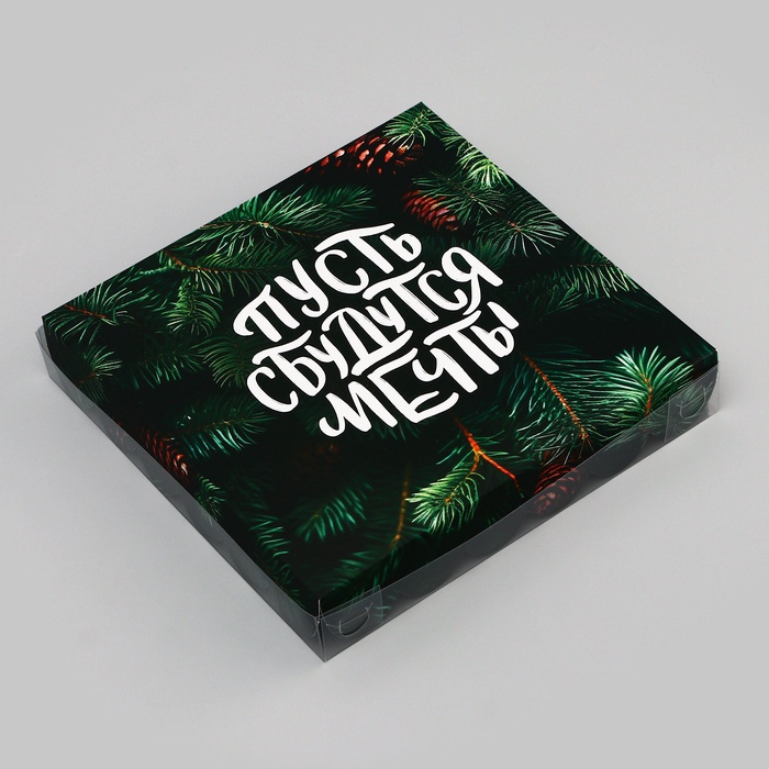 Коробка для печенья, кондитерская новогодняя упаковка, «Пусть сбудутся мечты», 18×18×3 см