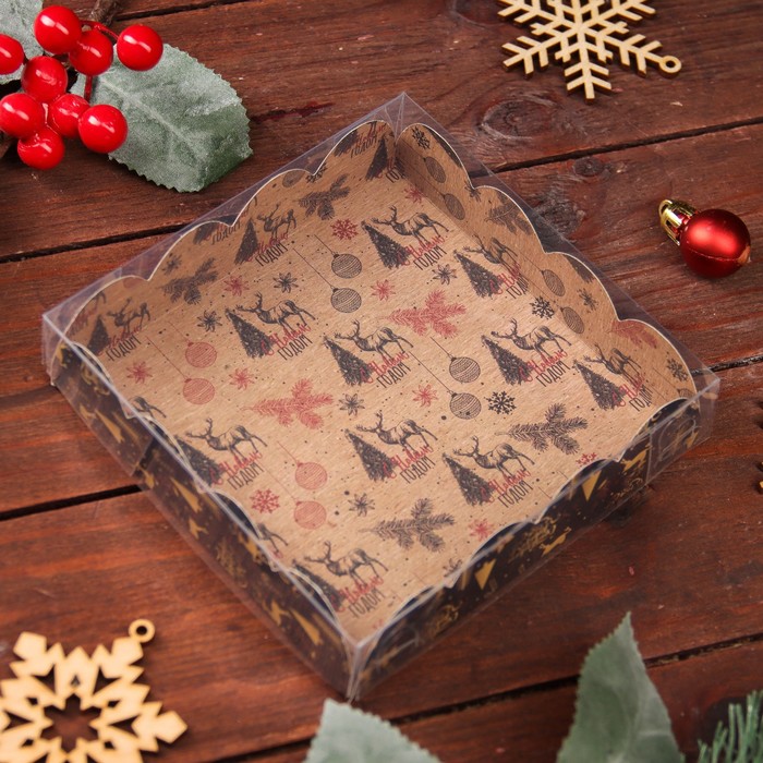 Коробка для печенья, кондитерская новогодняя упаковка, «Рождественская ночь», 12×12×3 см