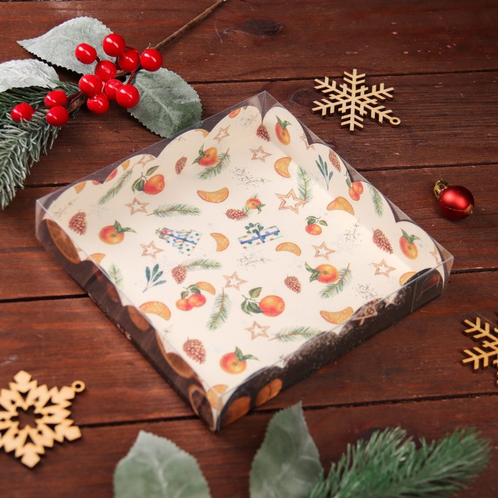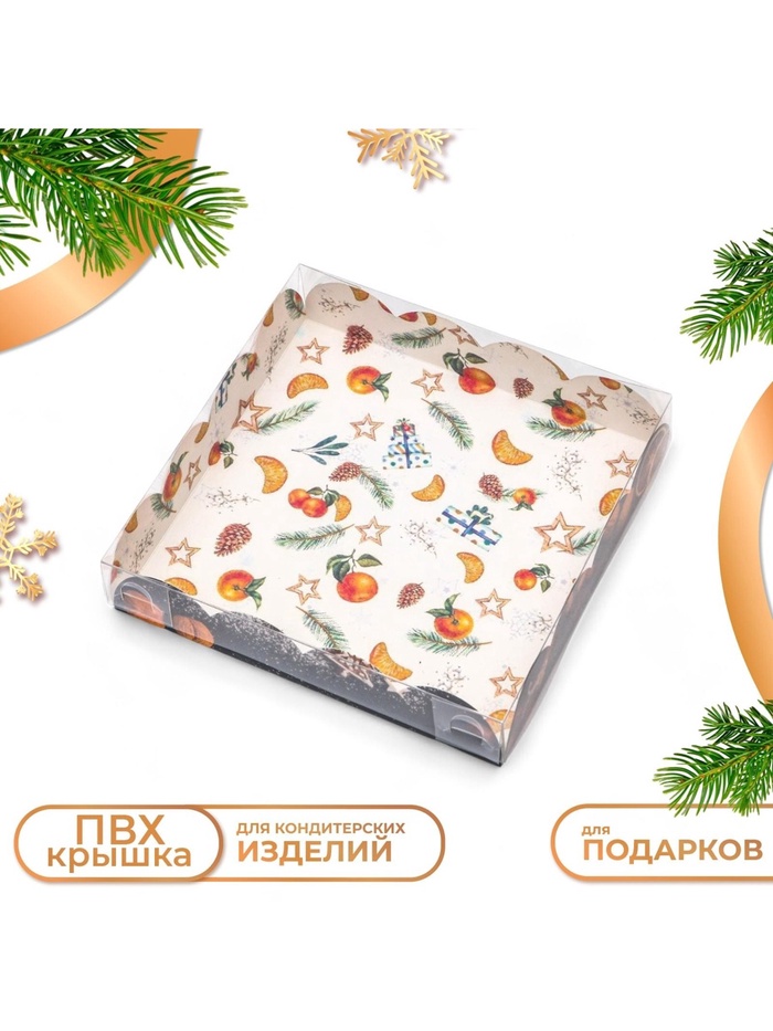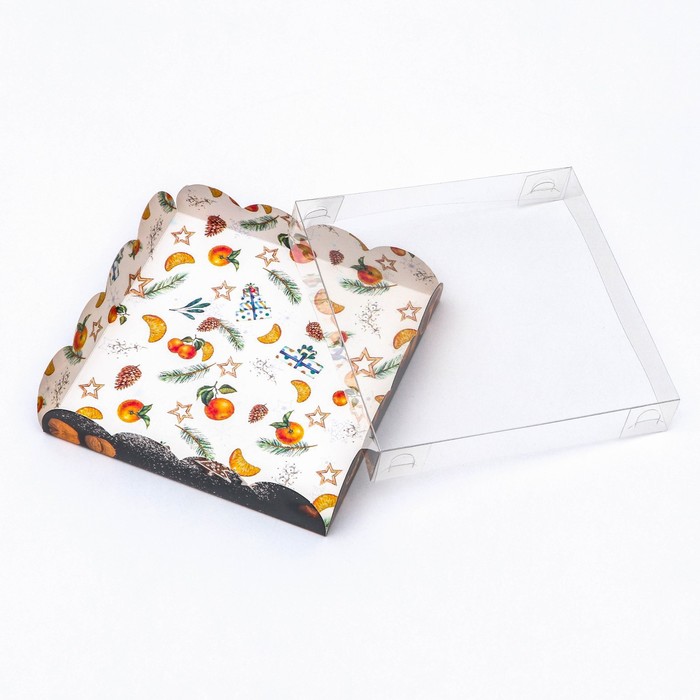Коробка для печенья с прозрачной крышкой, можно видеть содержимое коробки. Прекрасно подойдет для десертов, можно использовать для праздничного декора.