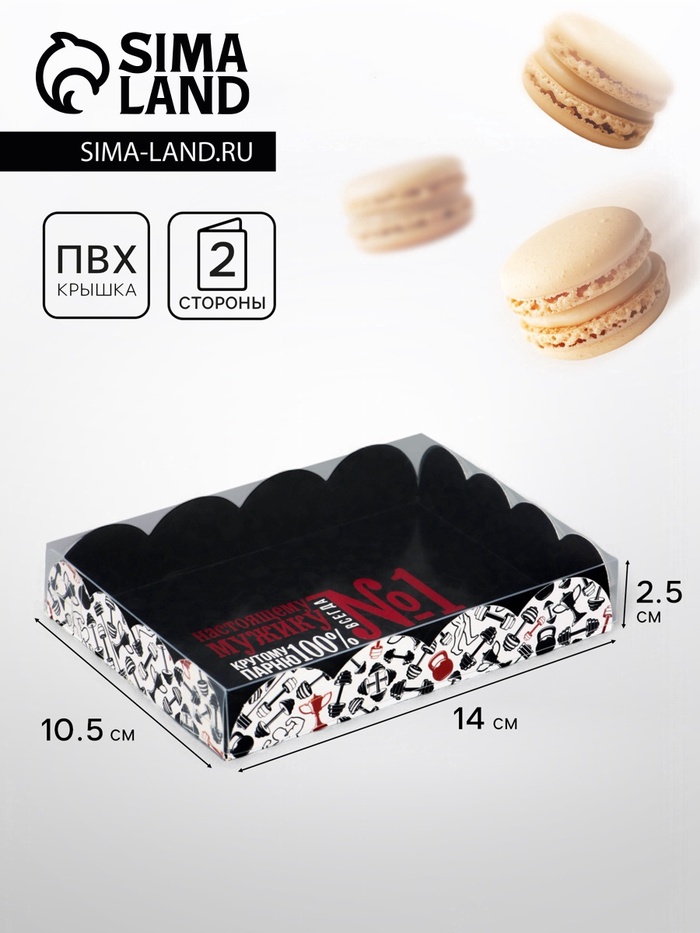 Прочный картон обеспечивает надежную защиту содержимого, а прозрачная крышка позволяет сразу оценить внешний вид угощений без необходимости открывать коробку.