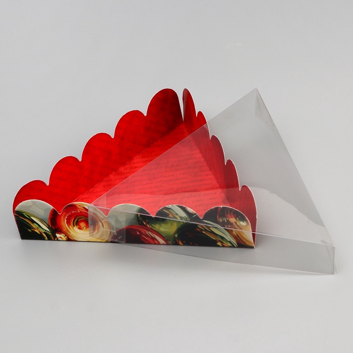 Прочная конструкция из качественного картона сохраняет форму и защищает содержимое, а прозрачная крышка позволяет эффектно показать аппетитные лакомства.