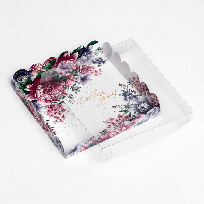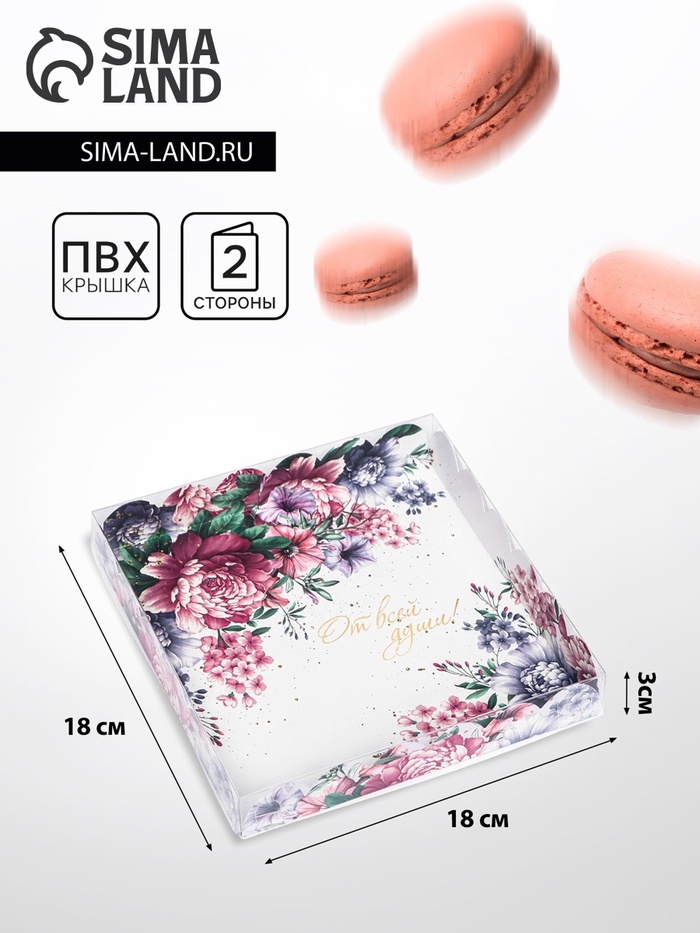Коробка для печенья с прозрачной крышкой. Прекрасно подойдет для десертов, можно использовать для праздничного декора.Преимущества:- плотный картон;- сборная конструкция;- удобно при транспортировке.