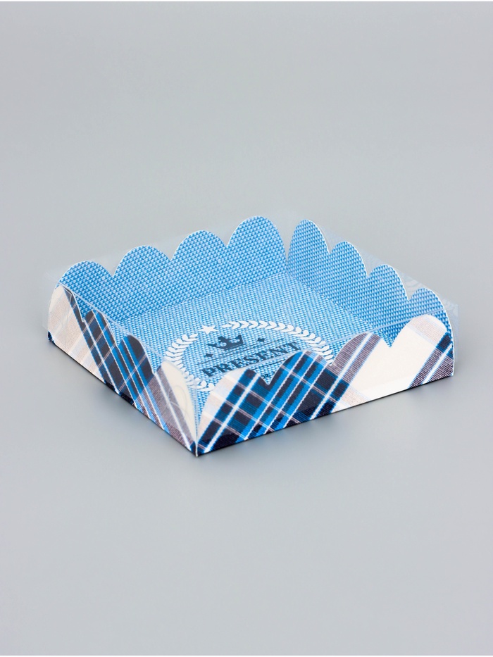 Прочный картон обеспечивает надежную защиту содержимого, а прозрачная крышка позволяет сразу оценить внешний вид угощений без необходимости открывать коробку.