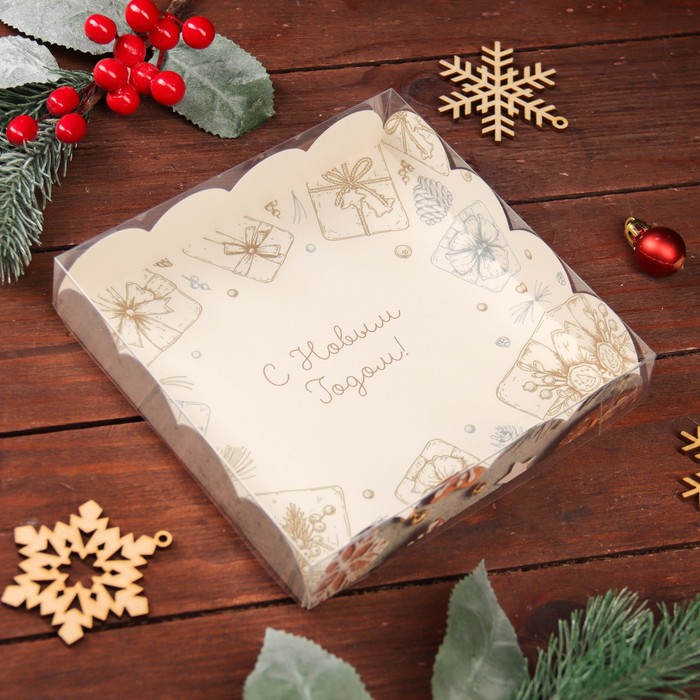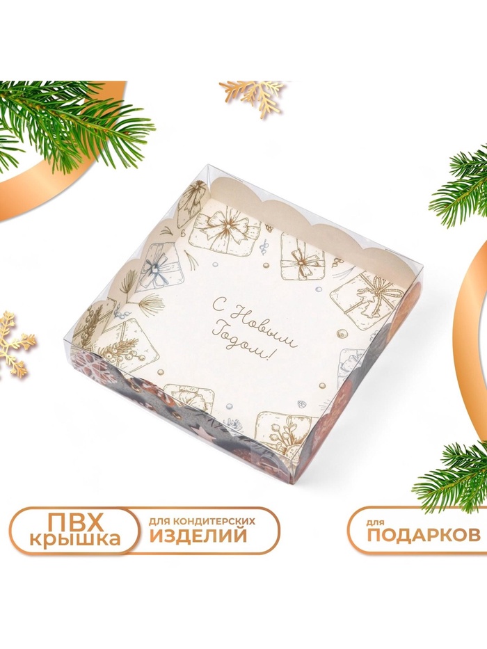 Коробка для печенья с прозрачной крышкой, можно видеть содержимое коробки. Прекрасно подойдет для десертов, можно использовать для праздничного декора.