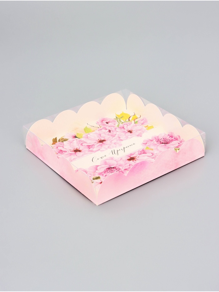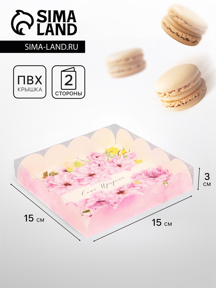 Прочный картон обеспечивает надежную защиту содержимого, а прозрачная крышка позволяет сразу оценить внешний вид угощений без необходимости открывать коробку.