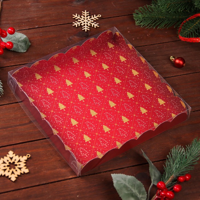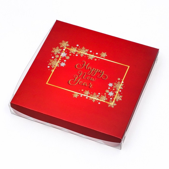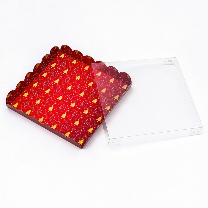 Коробка для печенья с прозрачной крышкой, можно видеть содержимое коробки. Прекрасно подойдет для десертов, можно использовать для праздничного декора.
