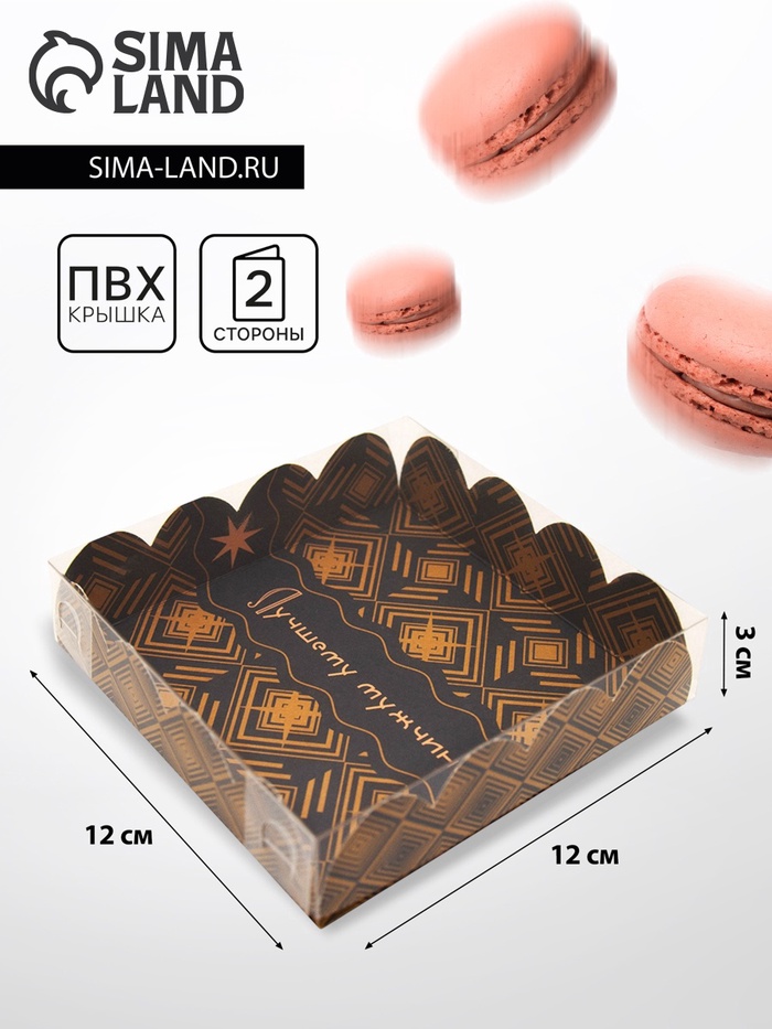 Коробка для печенья с прозрачной крышкой. Прекрасно подойдет для десертов, можно использовать для праздничного декора.Преимущества:- плотный картон;- сборная конструкция;- удобно при транспортировке.
