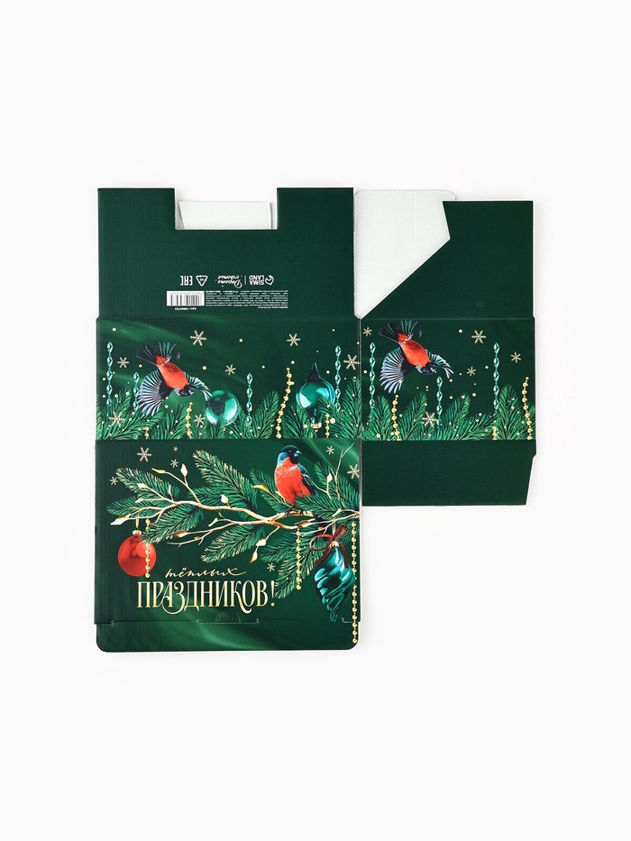 Коробка новогодняя подарочная «Зимние снегири», 22×15×10 см