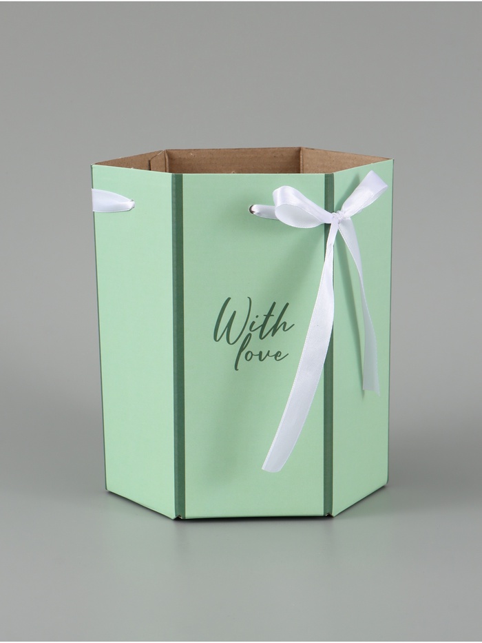 Коробка - переноска подарочная для цветов «С любовью», 17×14.8×19.5 см, шестигранник