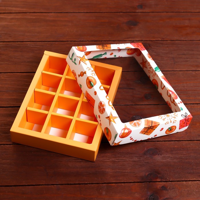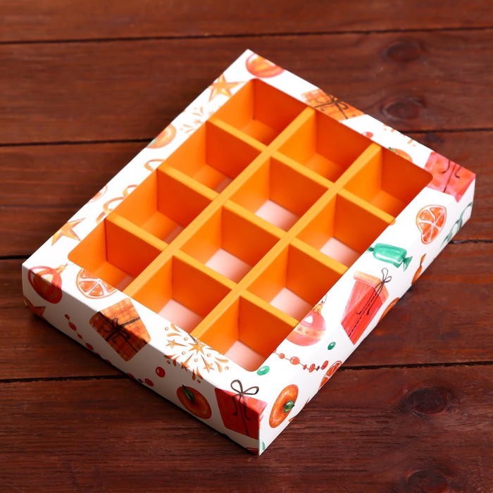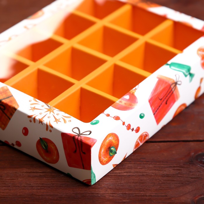 Коробка под 12 конфет «Мандарины», 19×15×3.6 см