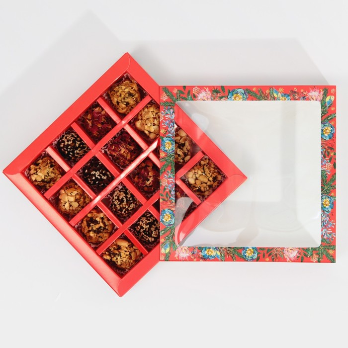 Коробка под 16 конфет с ячейками «Яркий Новый год» 17.5×17.5×3.5 см
