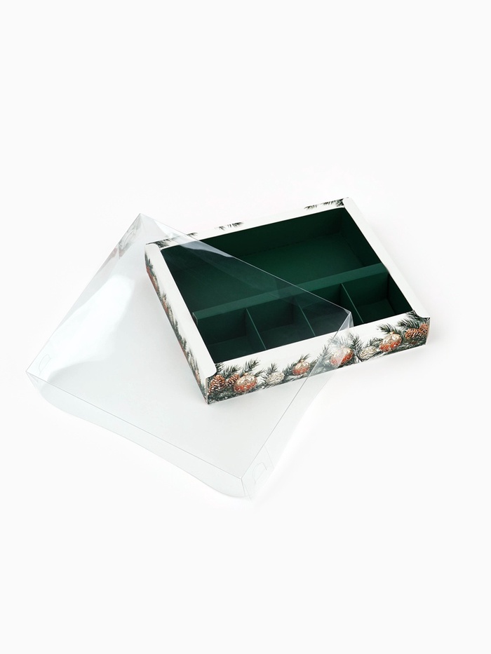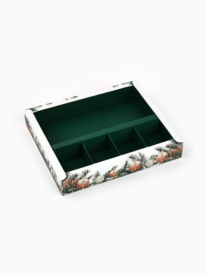Коробка под 4 конфеты и шоколад, с ячейками «Новогодние игрушки» 18.5×15.5×3 см