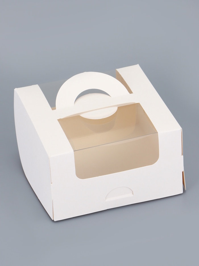 Коробка под бенто-торт с окном, белая, 14 х 14 х 8 см