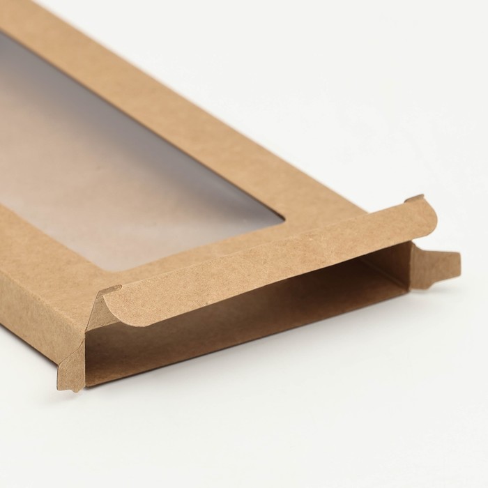 - Изготовлена из качественного крафтового картона, она имеет размеры 18 x 9 x 1,4 см и оснащена прозрачным окном, позволяющим видеть содержимое.