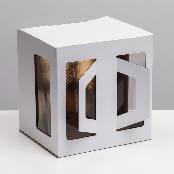 Главный акцент вашего праздника! Большая коробка для торта с двумя окнами и золотой подложкой — это профессиональное решение для солидных десертов и многоярусных композиций. Её внушительный формат и продуманные детали создают эффектную презентацию для самых важных торжеств.