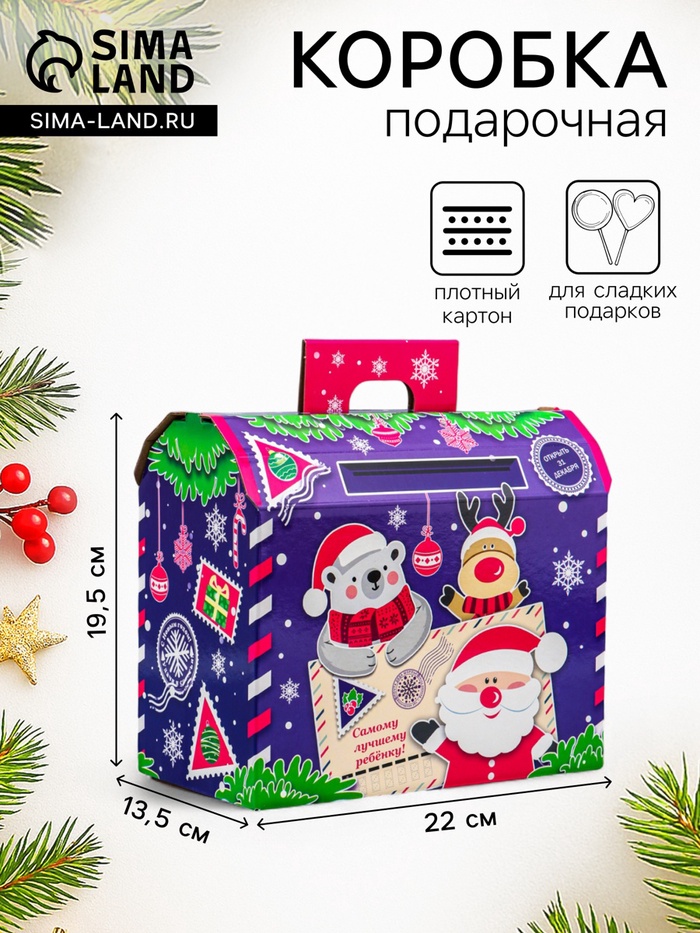 - Сбалансированные пропорции: Размеры 22×19.5×13.5 см подходят для упаковки наборов конфет, шампанского или новогодних сладостей. Форма обеспечивает устойчивость и удобное наполнение.
