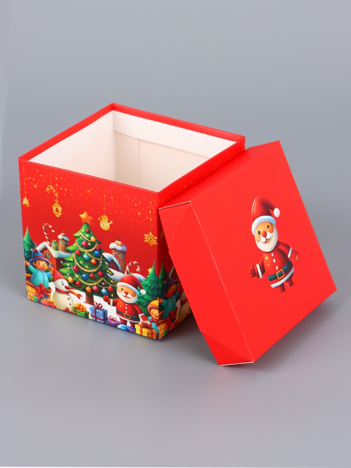 Создайте праздничное настроение с первой секунды! Новогодняя коробка 15×15×15 см — яркий акцент для подарков в стиле зимнего праздника. Квадратная форма и классическое сочетание красных оттенков делают упаковку универсальной для сладостей, игрушек или косметики. Прочный картон сохраняет форму, а самосборная конструкция экономит время.
