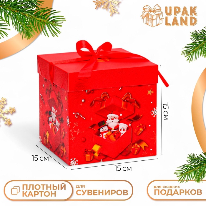 Самосборная новогодняя коробка 15х15х15 см — это практичный и стильный вариант для упаковки подарков.