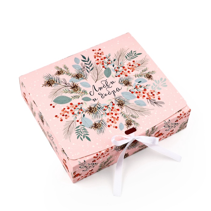 Коробка подарочная новогодняя складная «Новогодняя ботаника», 20×18×5 см, Новый год