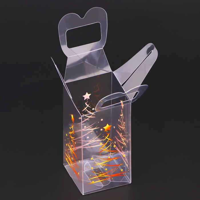Новогоднее сияние в миниатюре! Мини-коробка «Сверкающая ёлочка» 4×4×8 см — праздничная упаковка для изысканных десертов и маленьких сюрпризов. Прозрачные стенки с золотистым узором создают эффект новогодних огней, превращая обычные сладости в праздничный подарок.