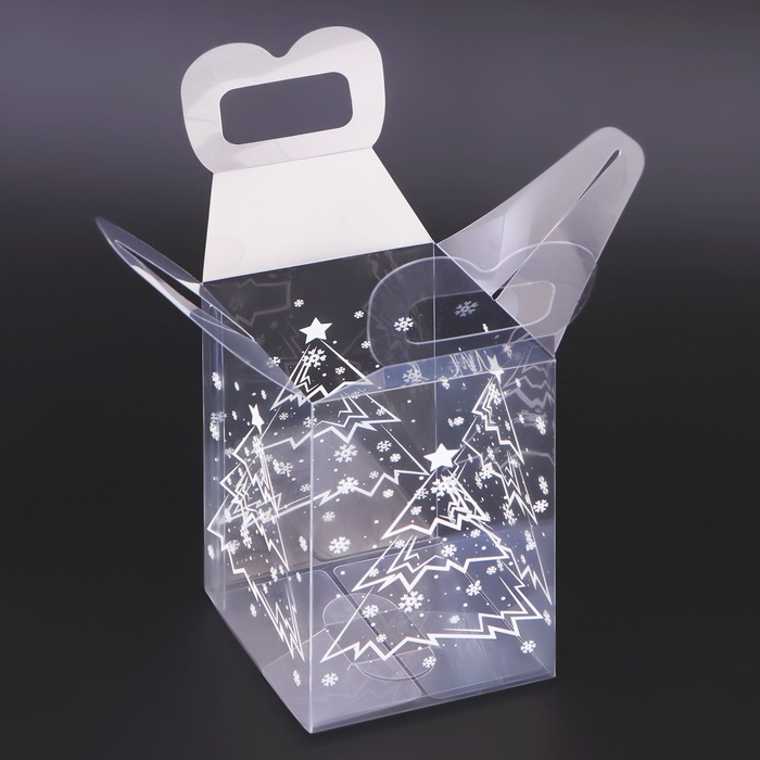 - Природный дизайн: Прозрачные стенки с нежным узором ёлочек выглядят элегантно и празднично. Содержимое хорошо просматривается, создавая эффект зимнего леса.