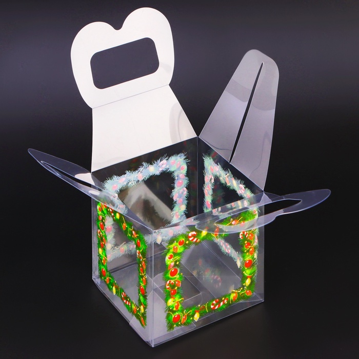 Новогоднее настроение в каждой коробочке! Подарочная коробка «Новогодние игрушки» 10×10×10 см — праздничная упаковка для сладостей и небольших сюрпризов. Прозрачные стенки с зелёным узором создают атмосферу зимнего праздника, а удобный квадратный формат подходит для разных видов кондитерских изделий.