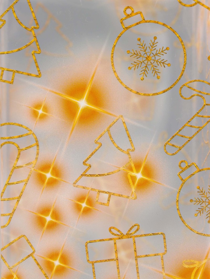- Праздничный дизайн: Золотистый узор на прозрачном фоне выглядит нарядно и стильно. Содержимое хорошо просматривается, создавая эффект драгоценного подарка.