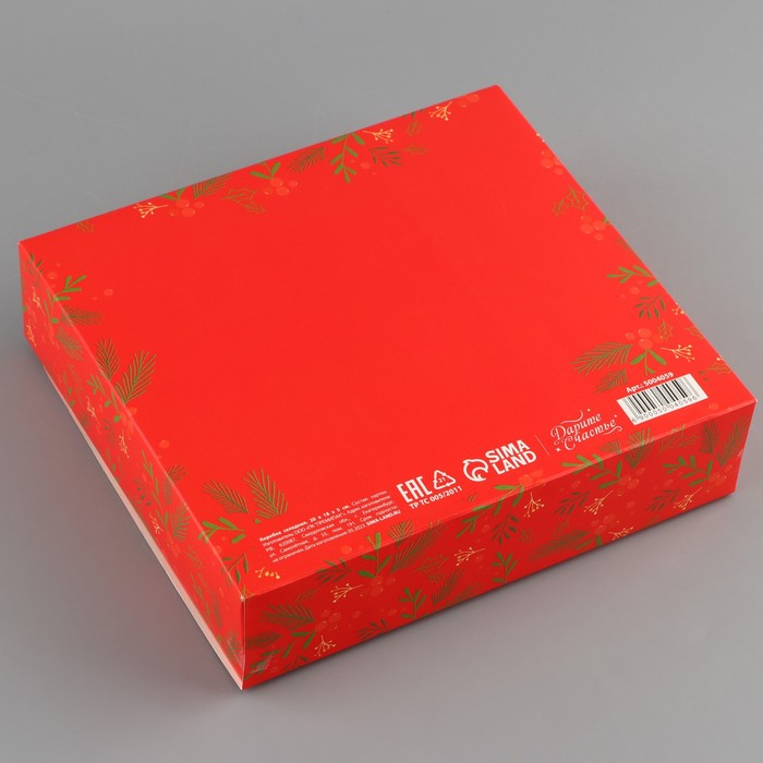 Коробка подарочная новогодняя складная «Теплоты и добра», 20×18×5 см, БЕЗ ЛЕНТЫ, Новый год