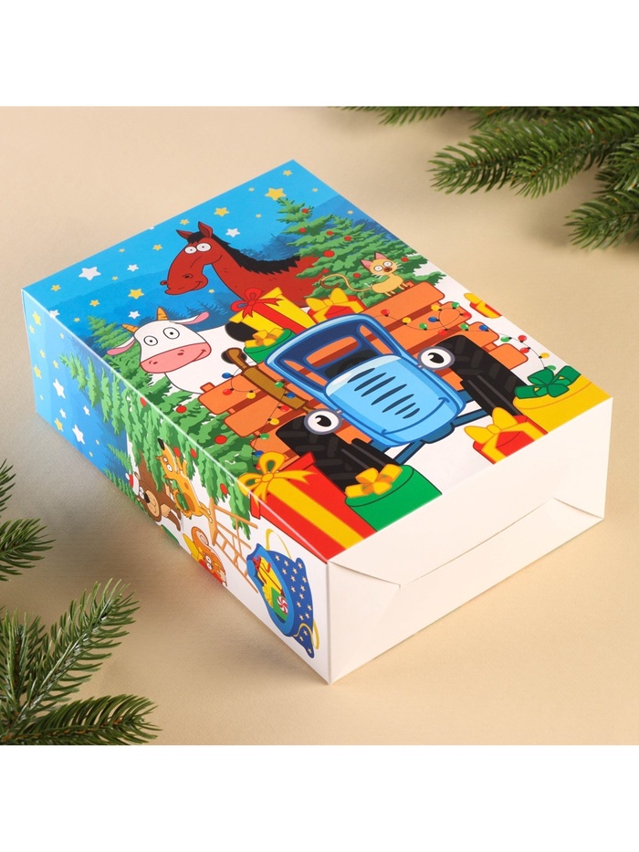 Коробка подарочная «С Новым годом», 16×23×7.5 см, Синий трактор