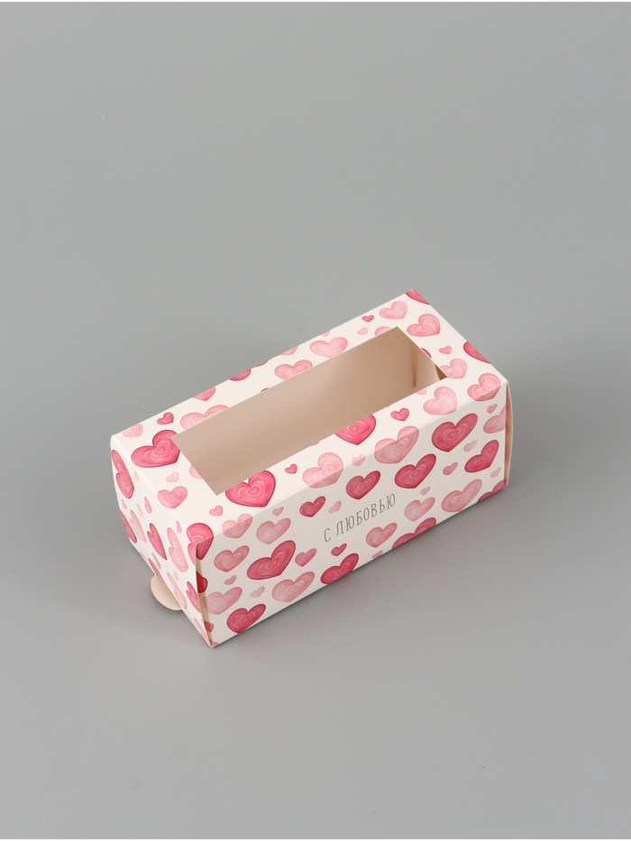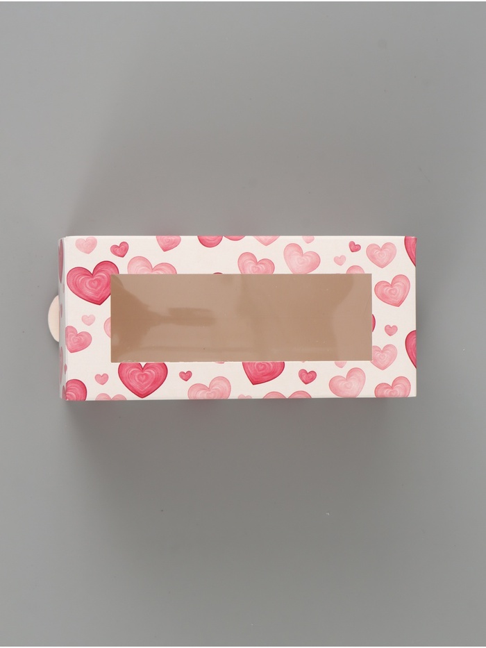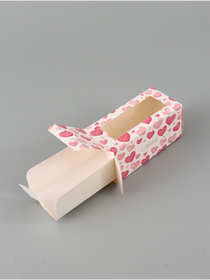 Коробка подарочная с окном «Сердца», 12×5.5×5.5 см, самосборная