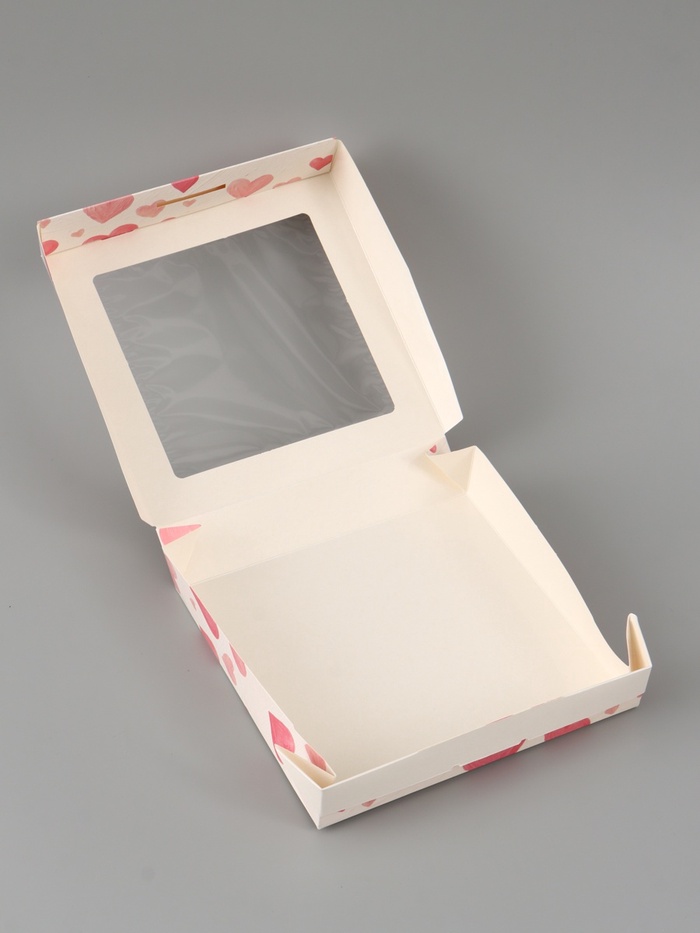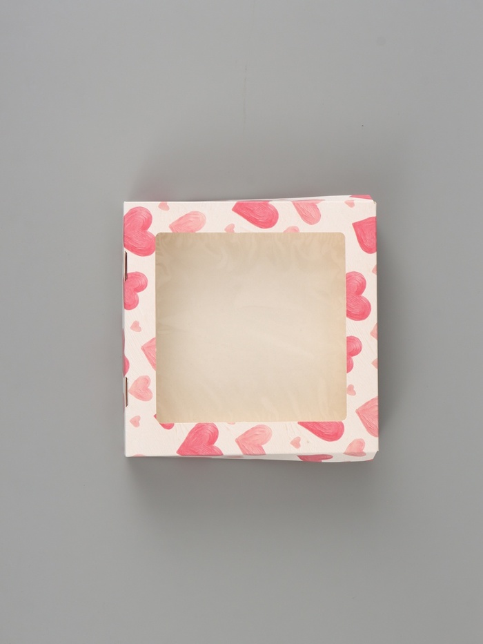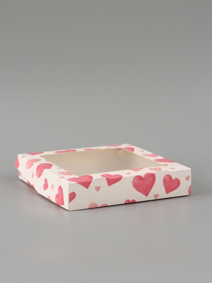 Коробка подарочная с окном «Воздушные сердца», 20×20×4 см, самосборная