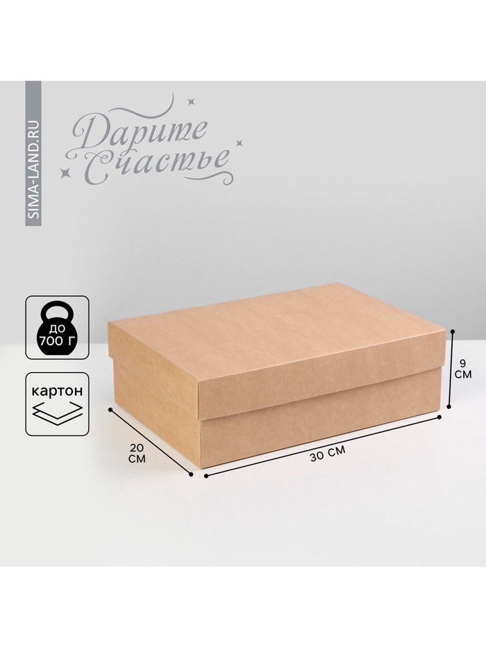 Стильная упаковка для особенных подарков! Крафтовая коробка (30×20×9 см) — универсальное решение для презентов любого повода. Натуральный бежевый цвет и лаконичный дизайн подчеркнут ценность вашего подарка.