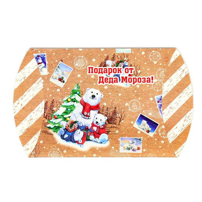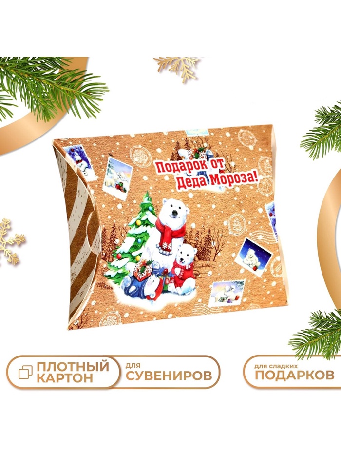 Внешняя сторона коробки украшена яркими новогодними узорами и изображениями, что придает ей праздничный вид.