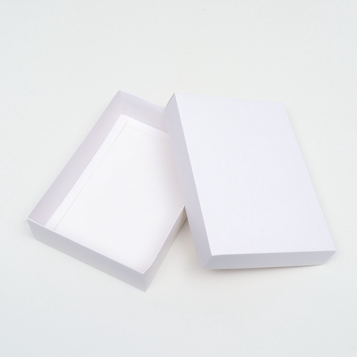 Классическая упаковка для аккуратного подарка. Складная коробка белая — это картонная коробка размером 21×15×5 см с отделяющейся крышкой. Универсальный размер и нейтральный дизайн делают ее подходящей для большинства стандартных подарков.