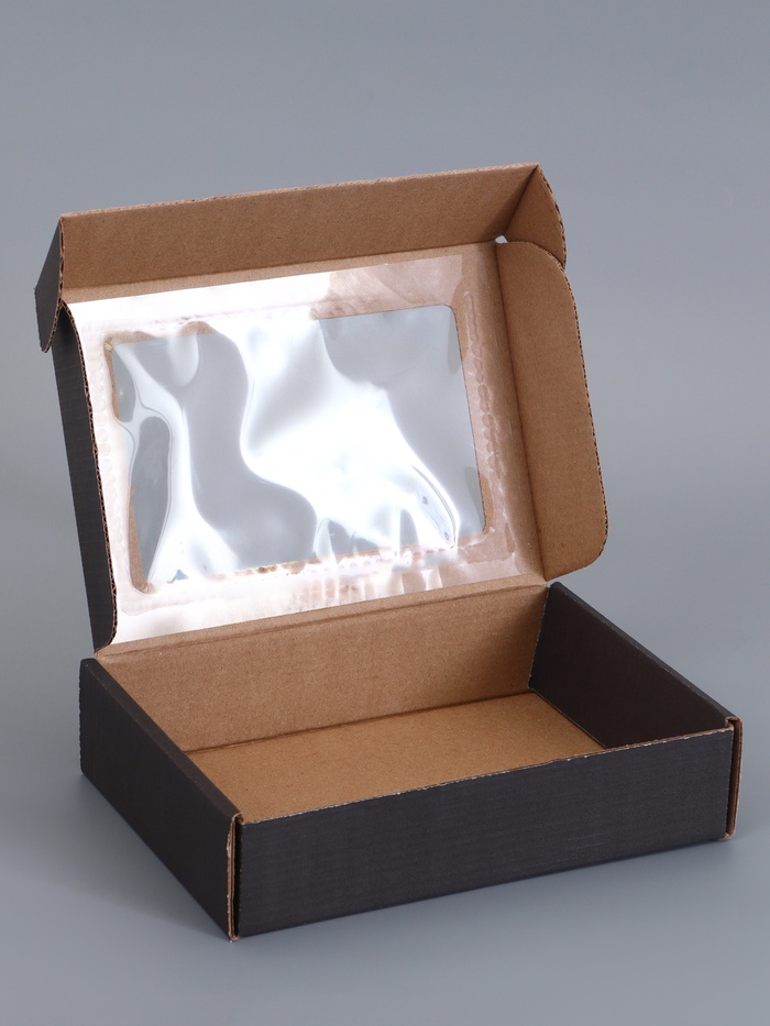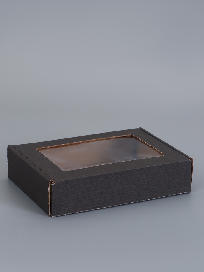 Коробка самосборная, черная с окном, для подарков, хранения и отправки посылок, 21×15×5 см