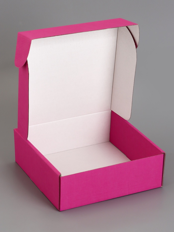 Розовая коробка с крышкой для нежной упаковки! Самосборная розовая коробка с крышкой 23×23×8 см — это универсальная упаковка для подарков, хранения вещей и почтовых отправлений. Конструкция «крышка-дно» обеспечивает удобный доступ к содержимому.