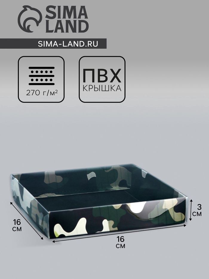 - Размер 16 х 16 х 3 см идеально подходит для размещения сладостей, сувениров или аксессуаров. Прозрачная крышка из PVC позволяет эффектно показать содержимое, сохраняя при этом его свежесть и презентабельность.