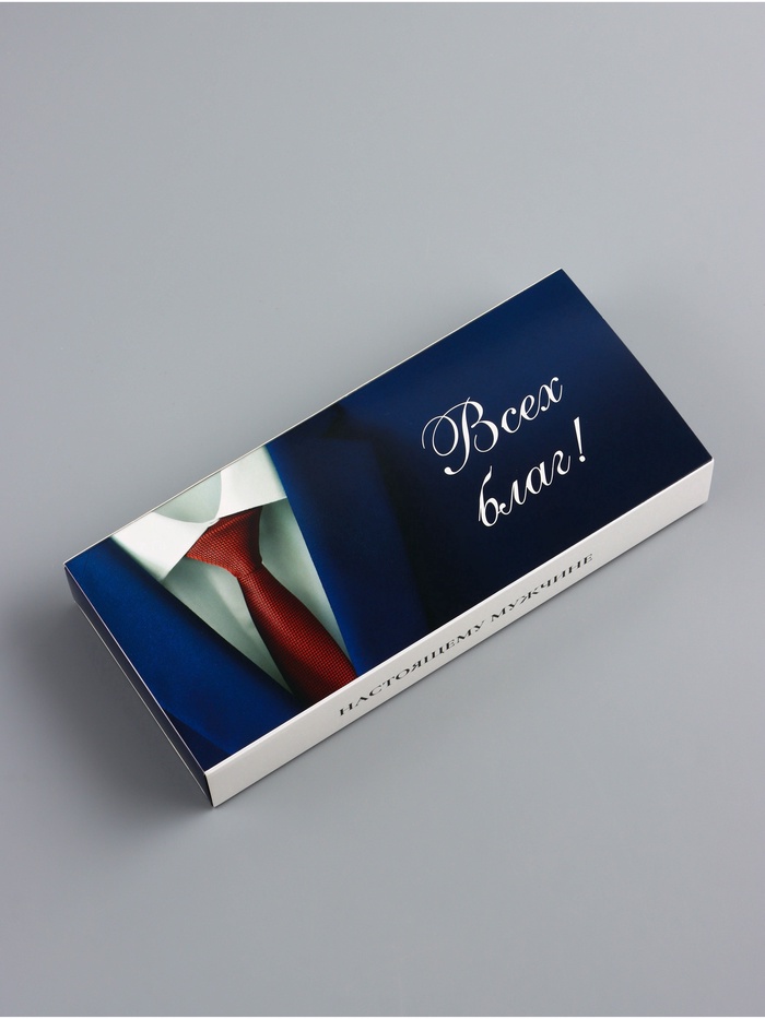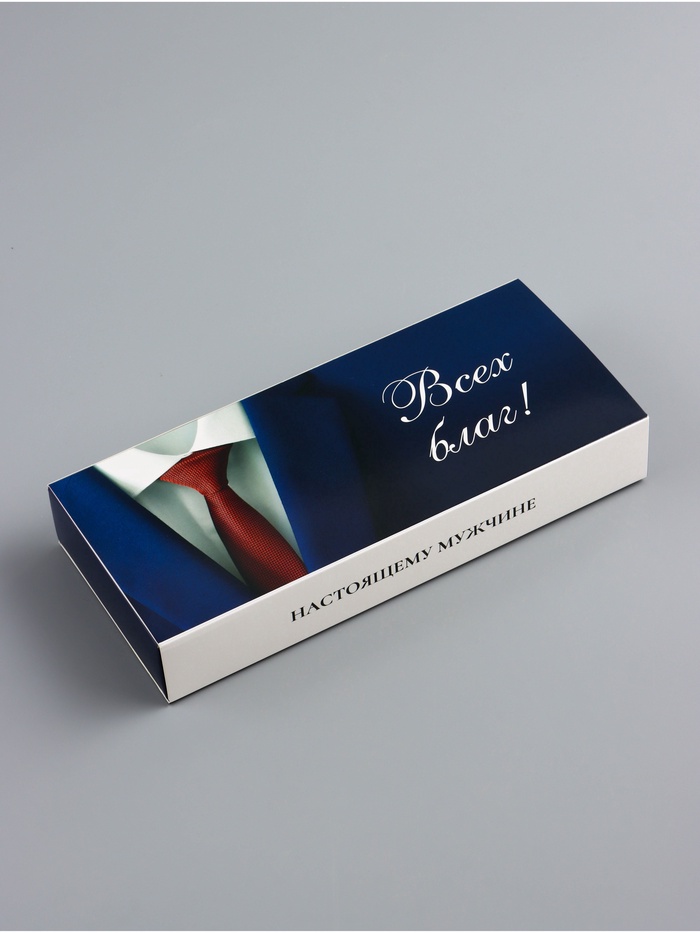 Складная коробка для конфет — это стильное решение для упаковки сладостей, которое станет идеальным подарком для настоящего мужчины. Её лаконичный дизайн в бело-синих тонах с тематическими надписями подчеркивает мужественность и создаёт праздничное настроение. Коробка рассчитана на 10 конфет, делая подарок аккуратным и запоминающимся.