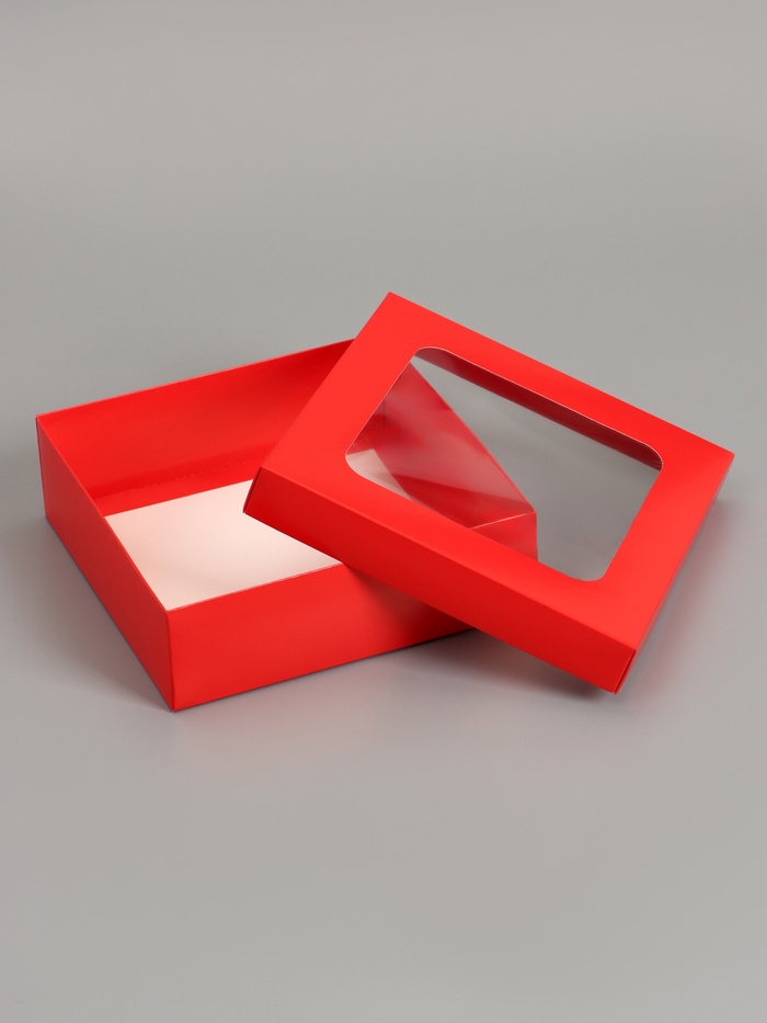 Яркая геометрия с элементом сюрприза! Складная коробка с окошком «Красный» – это квадратная упаковка из плотного картона. Насыщенный цвет и прозрачная вставка создают праздничный и интригующий образ для подарка.