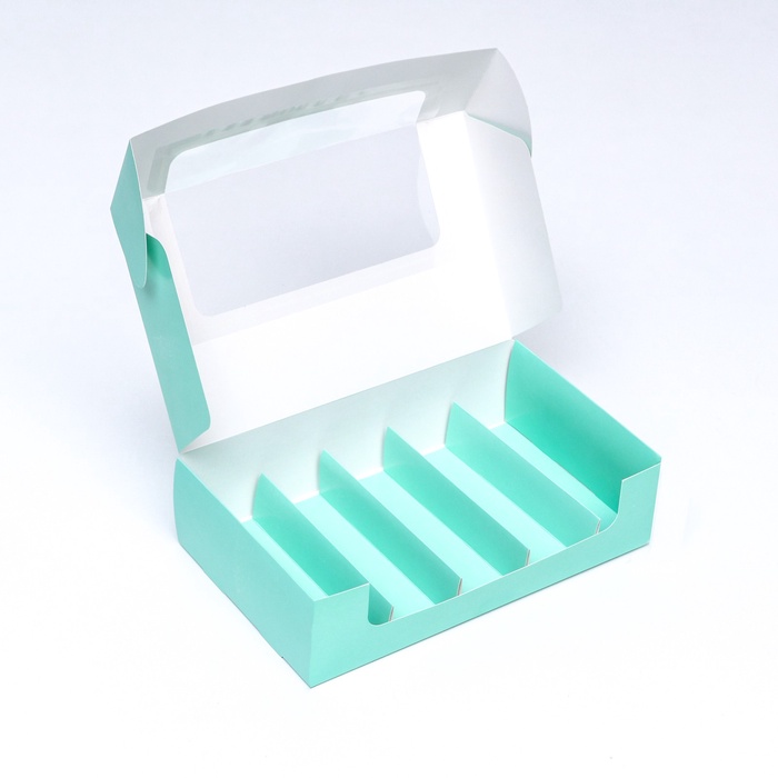 Зеленая фигурная коробка с окном на 5 эклеров — это стильное и практичное решение для кондитерских изделий. Ее продуманный дизайн превращает обычную сладость в изысканное угощение, готовое стать главным украшением праздничного стола.